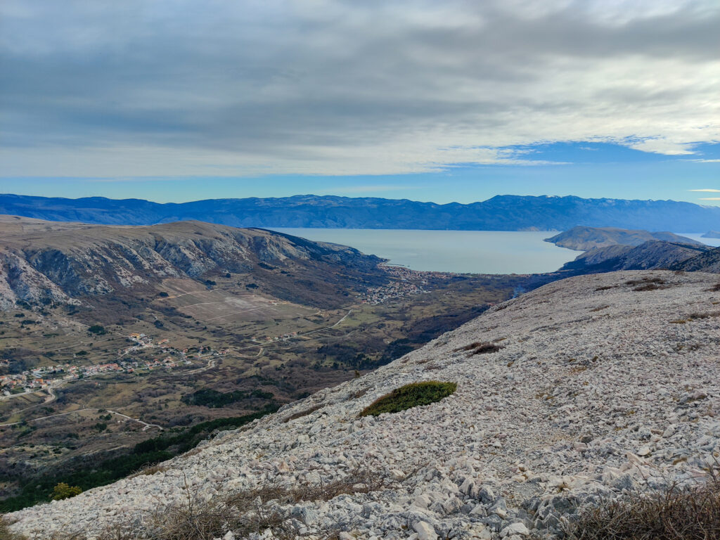 Produžujemo dalje do vrha Bag s kojeg je najljepši pogled na grad Bašku u koji se spuštamo do našeg prijevoza.U slučaju da ne bi bilo moguće organizirati da nas prijevoz čeka u Baškoj (ovisi o broju prijavljenih na izlet) planiran je uspon sa prijevoja Treskavac na Obzovu i Veliki Hlam te nazad istim putem.