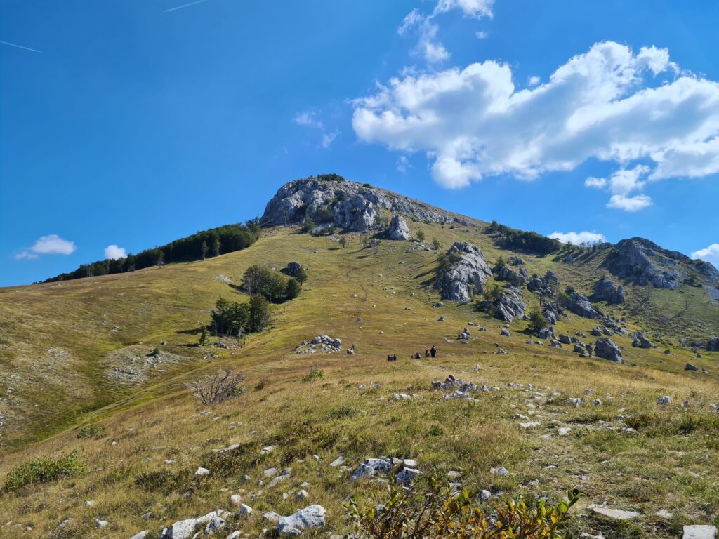 Daljnji uspon vodi preko krških livada i kamenitog terena do područja na oko 1200 m nadmorske visine, gdje se nalazi zanimljiv park prirodnih geomorfoloških oblika, poznat po stijeni nazvanoj “Marsovac”. U nastavku dolazimo pod vršni greben, gdje se nalazi križanje planinarskih puteva – strmiji smjer vodi direktno na vrh, dok blaža varijanta omogućuje lakši pristup.